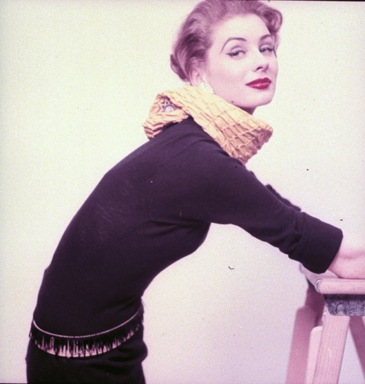 The fifties ushered in more than a sinuous sweater line and the reign of the fit-and-flare silhouette (first introduced by Christian Dior’s New Look in 1947). It also established an idealized, formal ideal of womanhood that demanded arched-brow perfection and a perfectly drawn lip, seen here on the original supermodel, Suzy Parker.