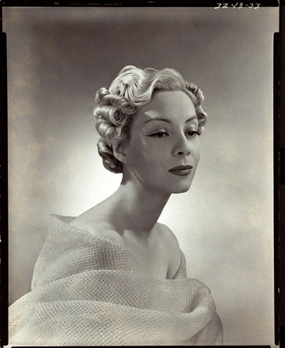 Lauren Bacall’s face-framing waves represented one variation of the era’s beauty ideal, while the look proved positively dangerous for Rosie the Riveter types who pulled their hair away from their face to work in factories during wartime. Rolled, architectural pompadours, whether worn with tailored suits or feminine party frocks, communicated strength and purpose.