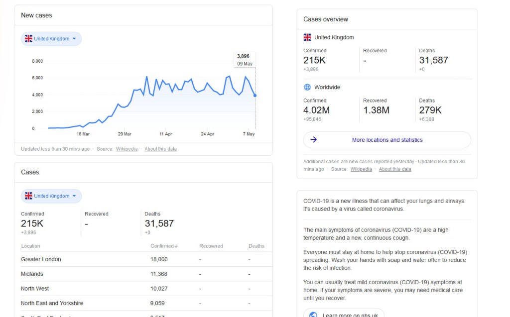 UK death toll increases to 335. The Department of Health and Social Care released its latest figures, showing that 6,650 people have tested positive for Covid-19 and 335 patients have died.
