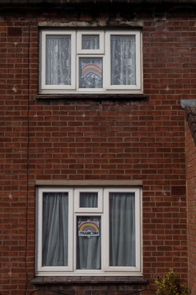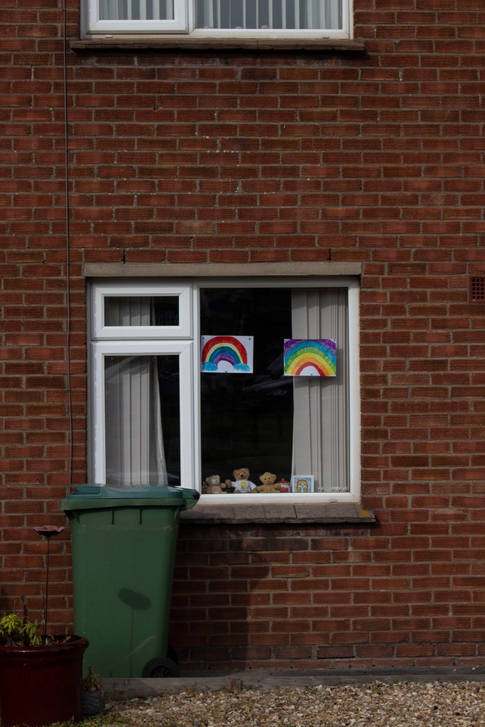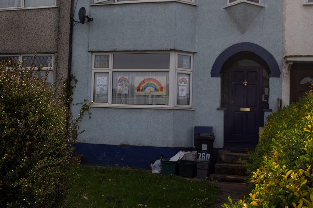 For these images I focused on using colour to tell a story. During this time rainbow drawings/painitngs have become an iconic part of isolation in supporting the NHS and keyworkers. I thought it would be a good idea to document this and focus on colours. I thought about composition and a the rest of the colours in the frame. I focused on neutral colours, with the colourful rainbows.