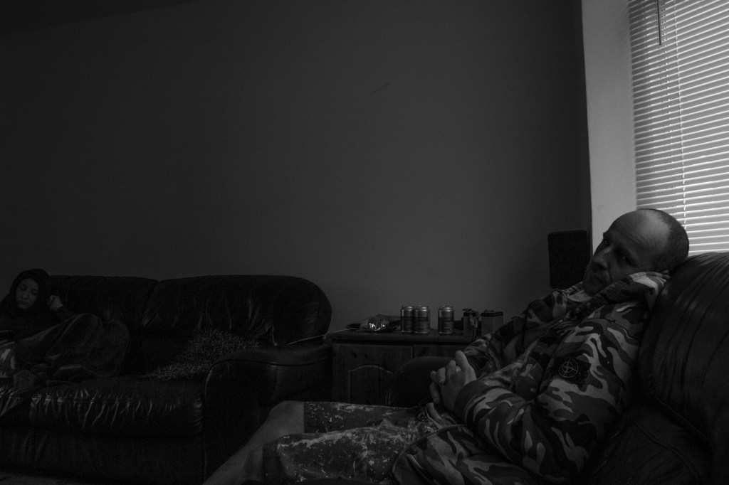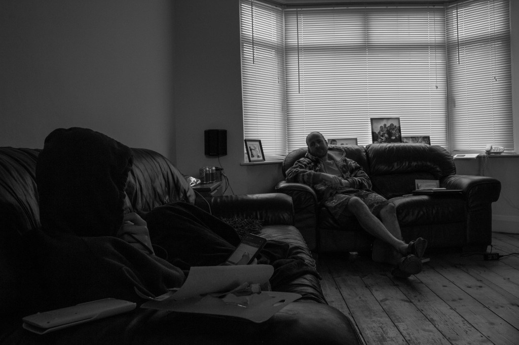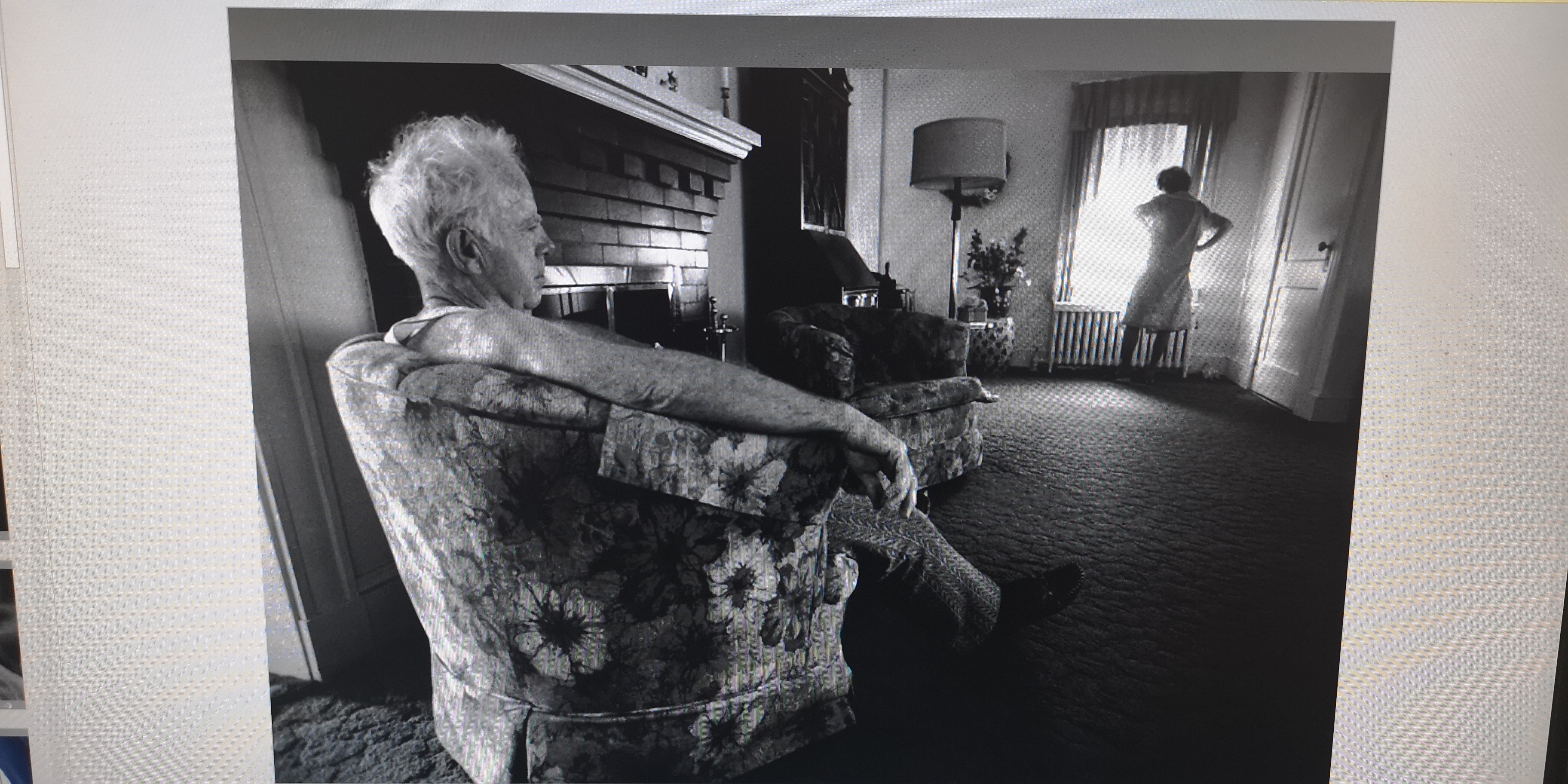 This shot by Richards shows an elderly man on a chair. He sits in a chair than fills the majority of the frame, with his arm resting on it. We can also see his wife in the top right corner looking outside as a blast of over exposed light comes through the window. Richards is close to the man but the wide frame creates a distancing feel to the image and makes the chair look much larger than it is in proportion to the rest of the room due to how close he is with a wide framed lens.