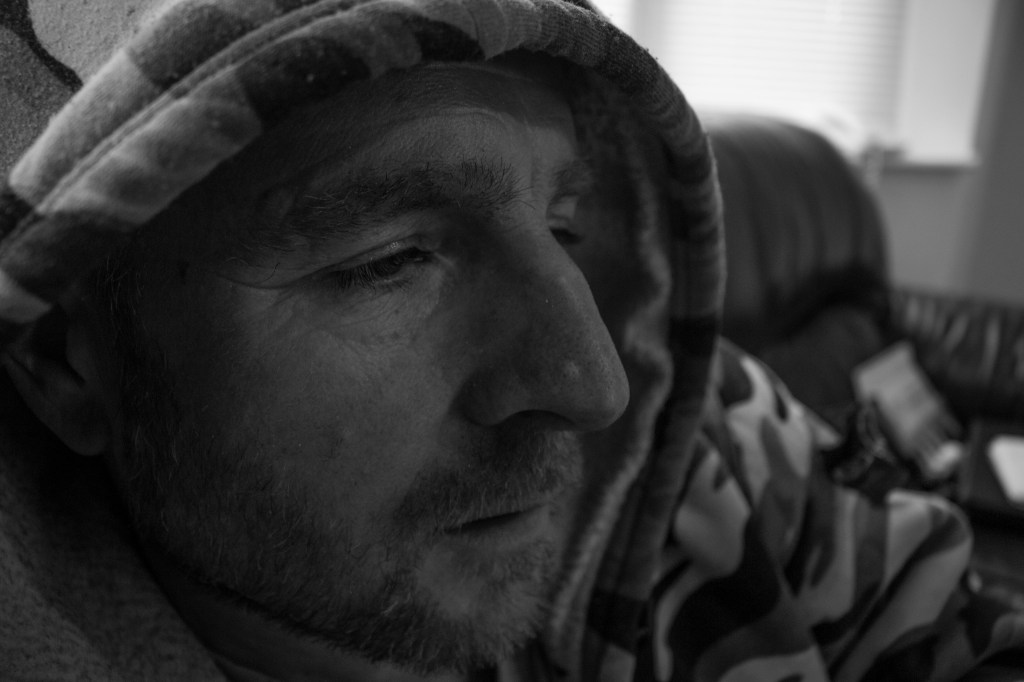 To recreate them I used my living room. The lighting outside was quite dull so found it difficult to create a similar lighting. I tried two ways of recreating the image. The first I went close to my dad and showed my sister in the left of the frame, my aim was to captue two people in one frame using the widest possible aperature my camera could.