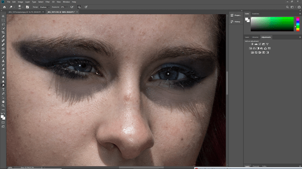I used the dodge tool to lighten the eye area as the shadow was to strong